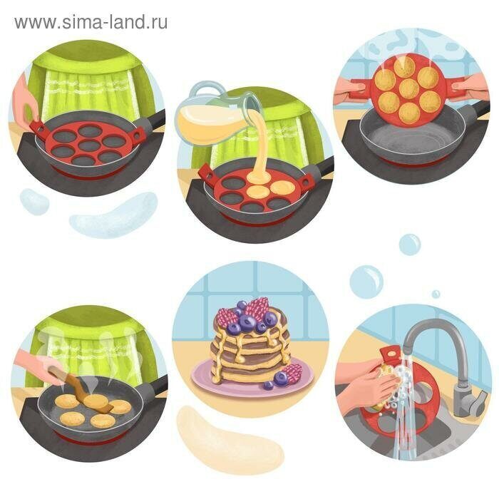 Материал формы безопасен для вашего здоровья. Подходит для приготовления на любой сковороде с любым покрытием, не травмируя его. Это изделие не надо смазывать маслом, продукты не будут прилипать к его поверхности.