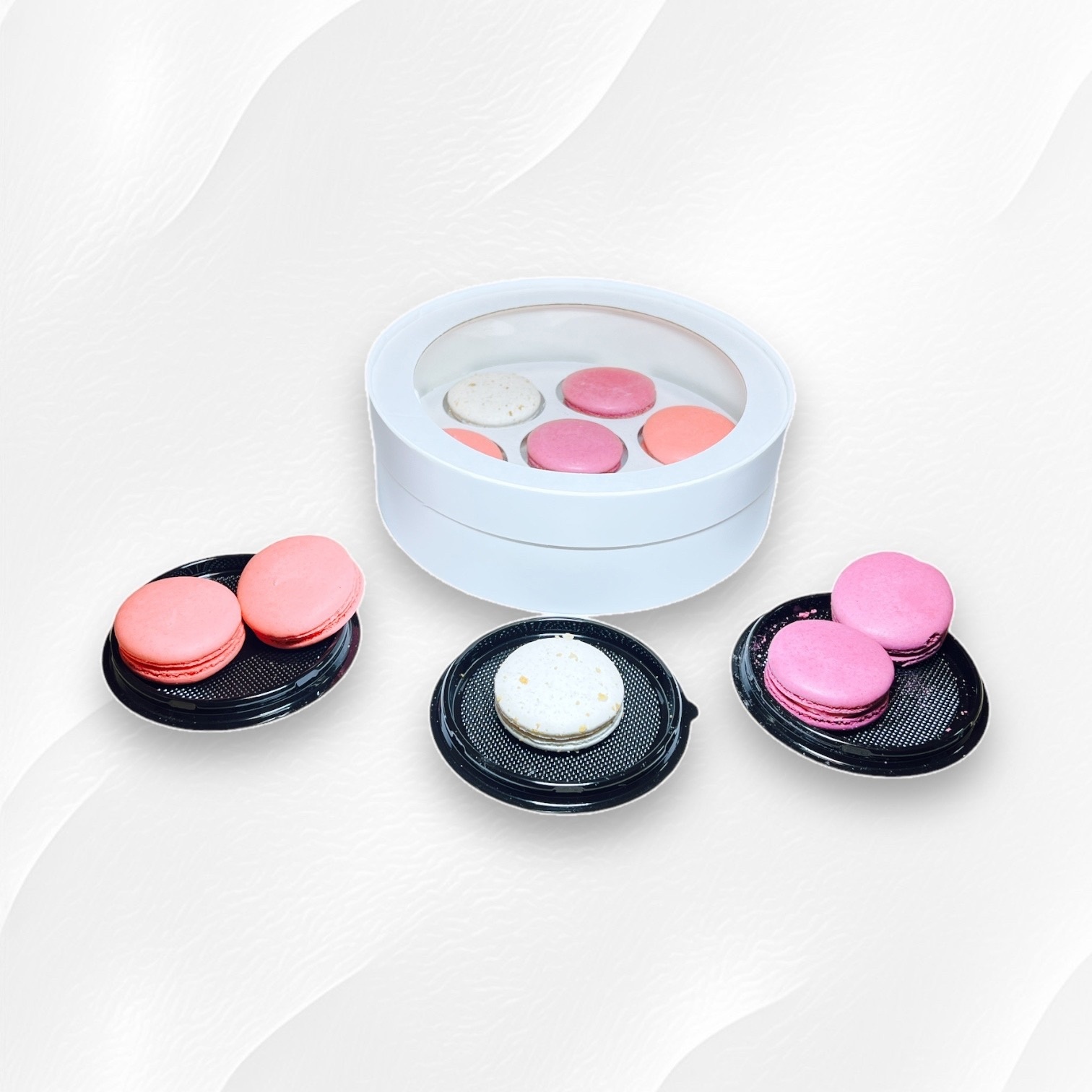 Коробка для макарон круглая с окном диам.200мм выс.60 мм (7) (белая) НОВИНКА